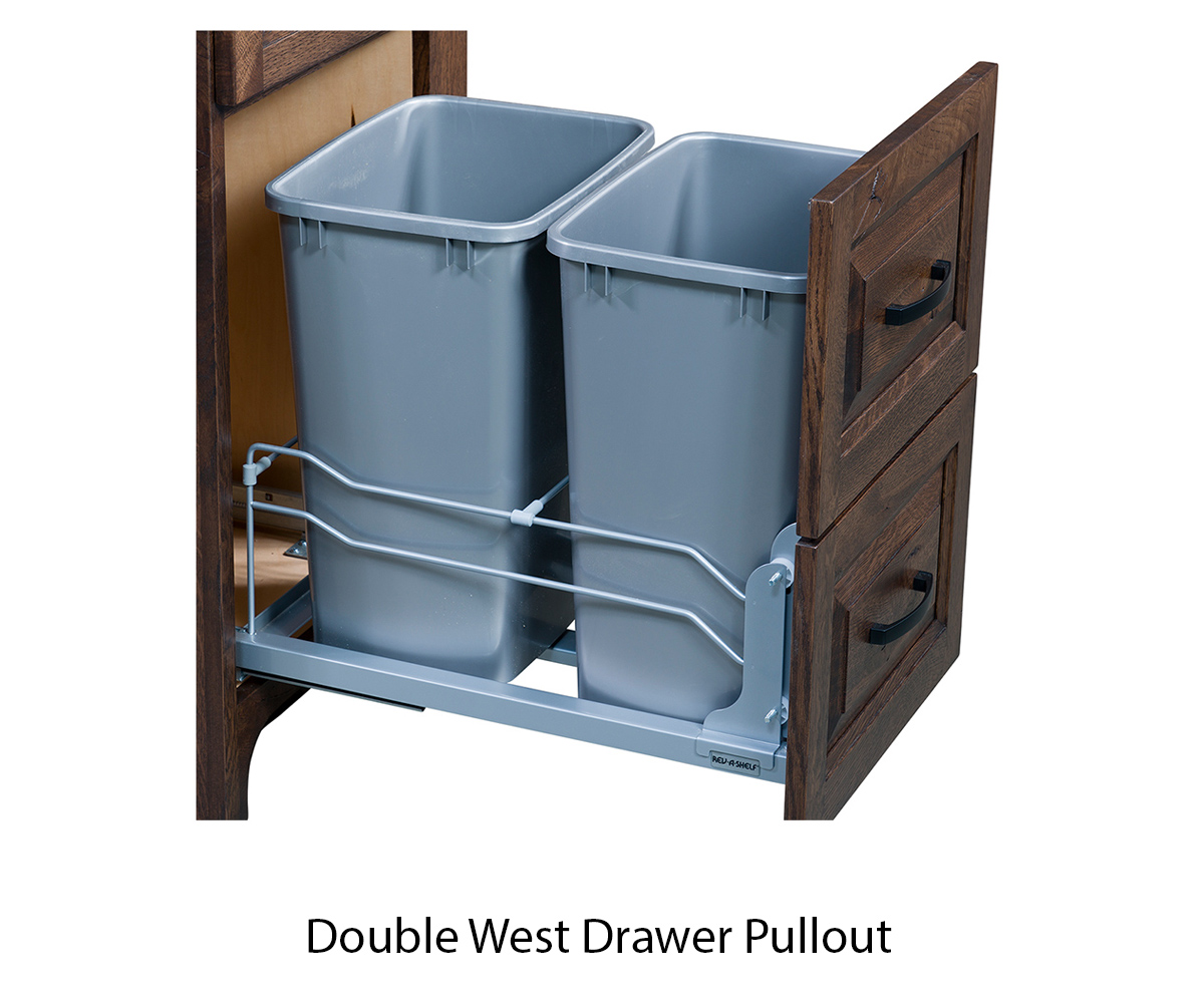 • Double waste can pullout behind right door