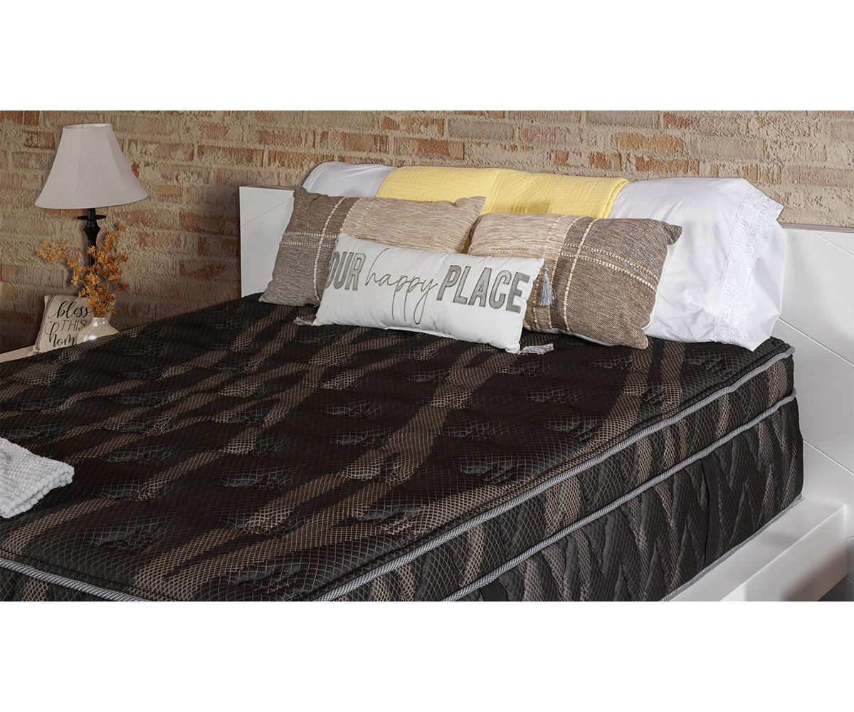 • Mattress core: 10″ fabric encased coils with foam